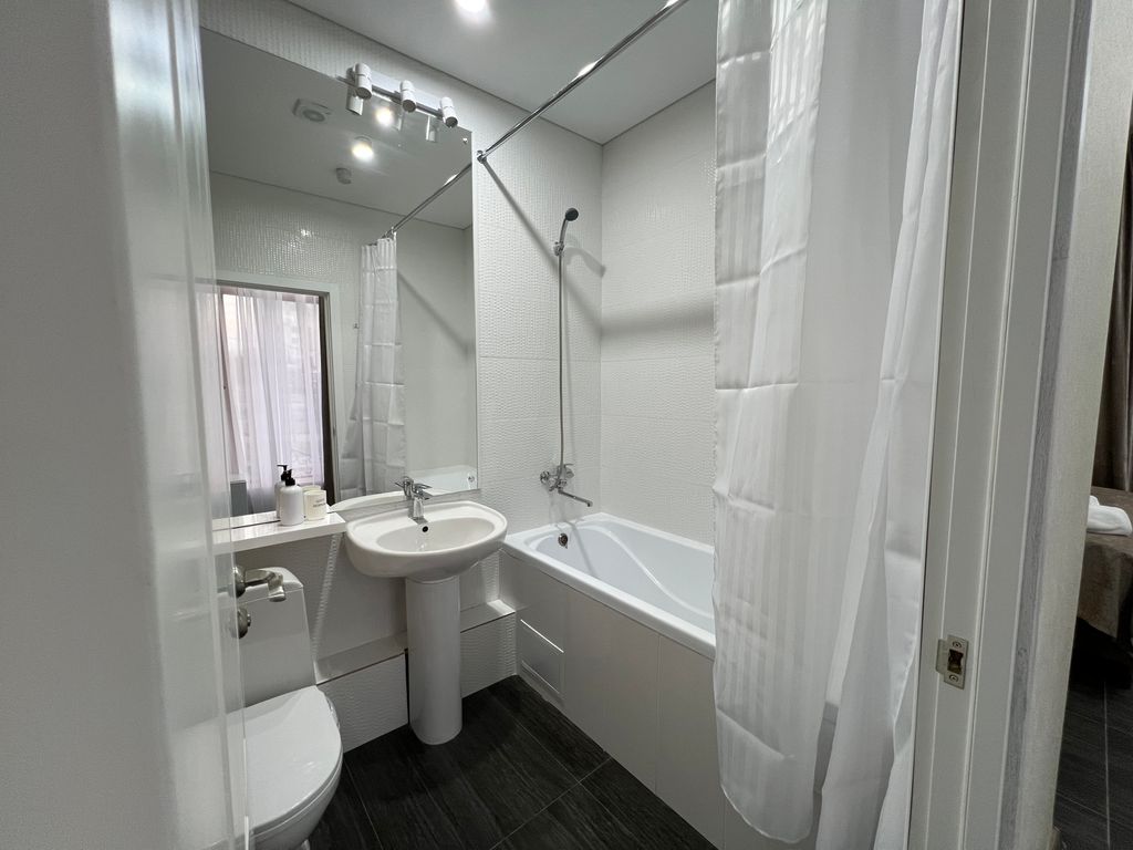 В комнате есть всё необходимое для комфортного проживания: кондиционер, wi-fi, телевизор, постельное бельё и полотенца.